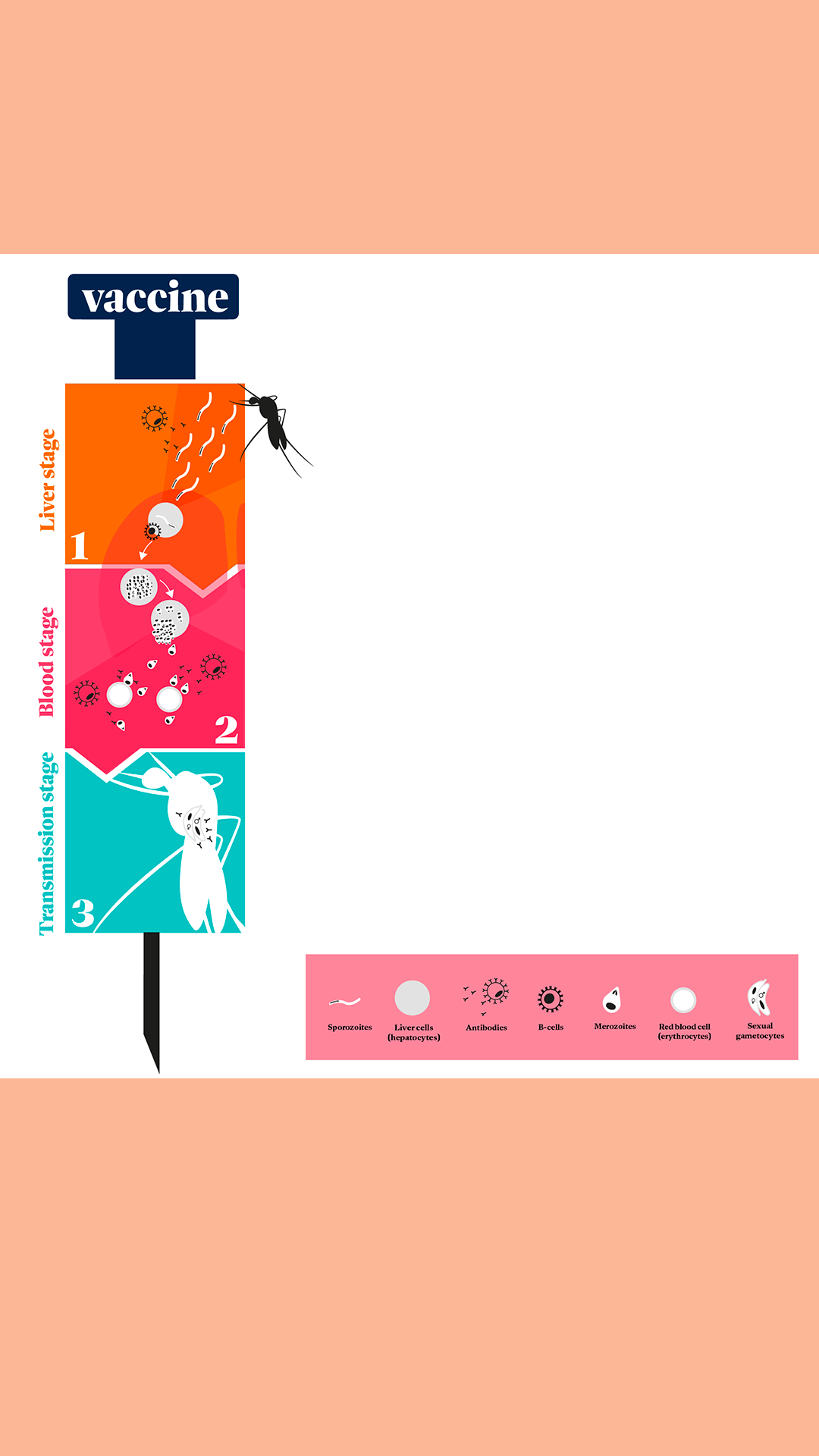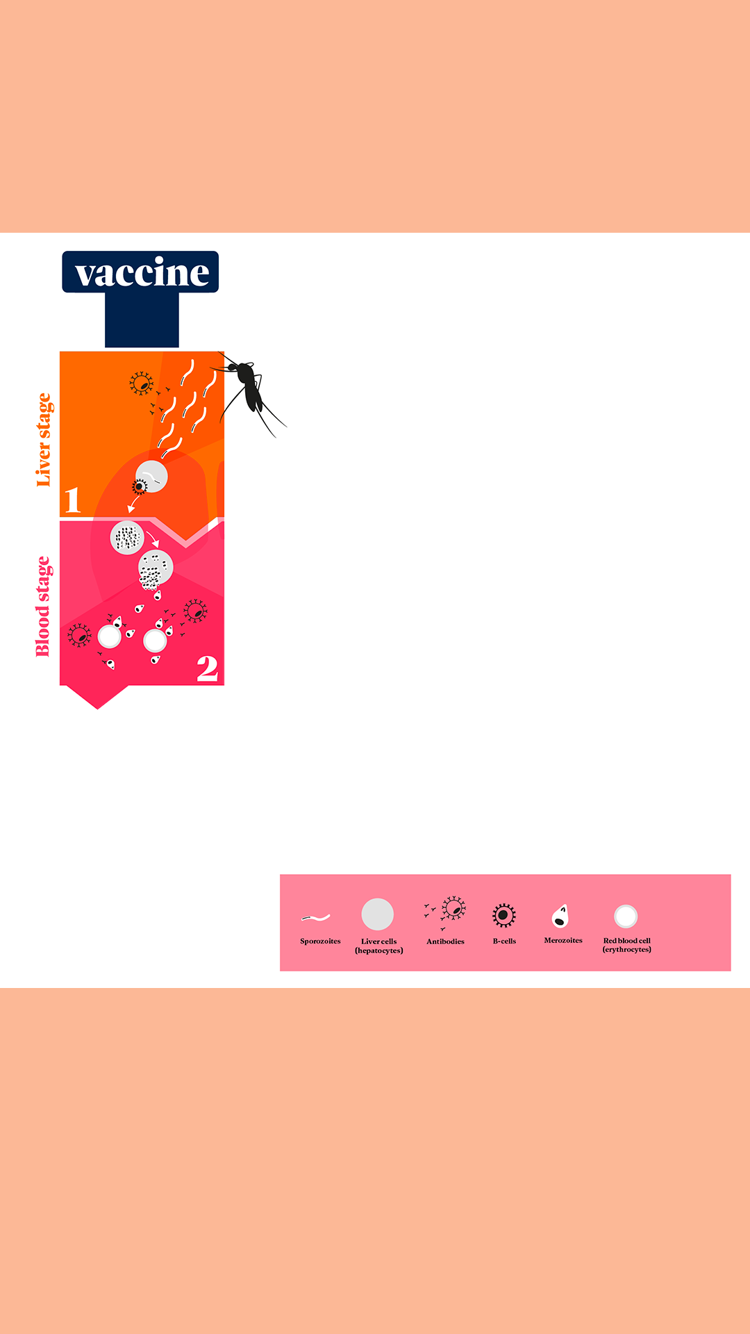 - The vaccine aims to prevent the development of the parasite’s next stage – the merozoite stage